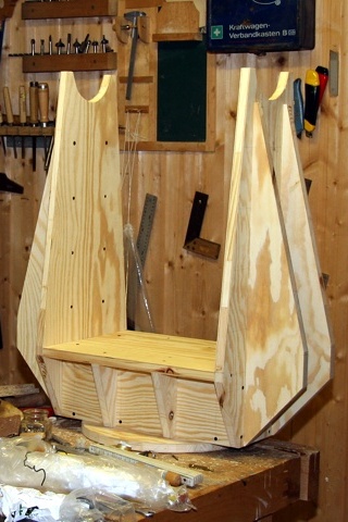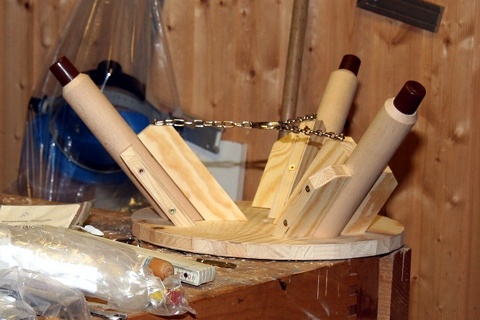 Stativbeine wurden aus 40 mm dicken Buchenholzrundstäben hergestellt.