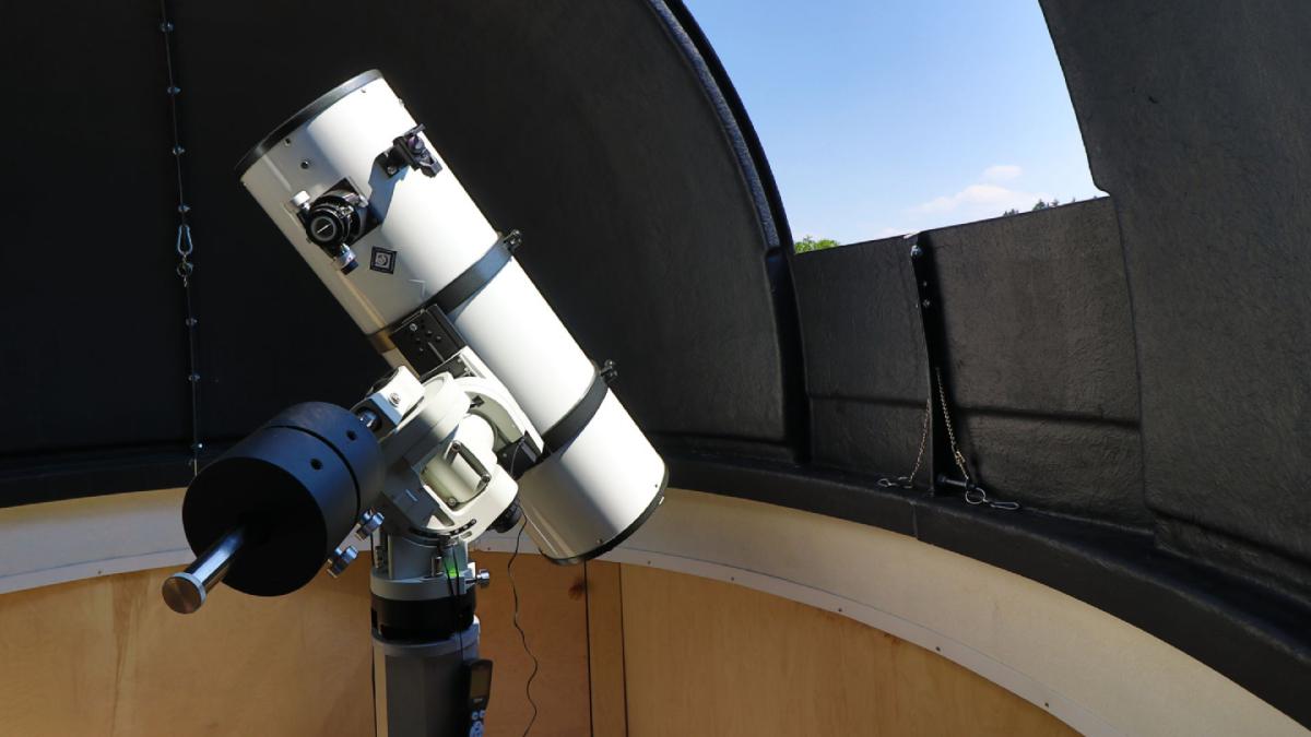Da war zum einen der 254-mm-Newton-Reflektor, den wir den „Lichteimer“ nannten, weil er mit einer Öffnungszahl von 4 recht kurzbauend ist und damit entsprechend anmutet. Die Kuppel wurde 2023 vom Garagendach hinunter auf das Grundstück verlegt. Zusätzlich wurden zwei 2,20-m-Kuppeln installiert. Ein Sonnenobservatorium befindet sich derzeit im Bau.