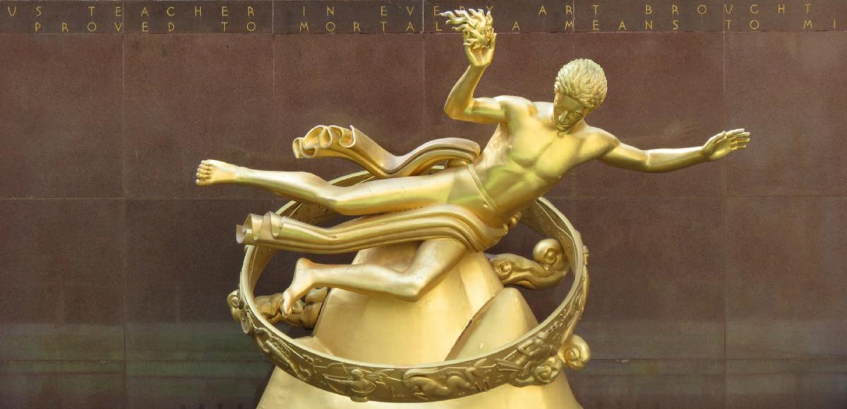 Die Prometheus-Statue am Rockefeller Plaza in New York zeigt die astrologischen Tierkreiszeichen.