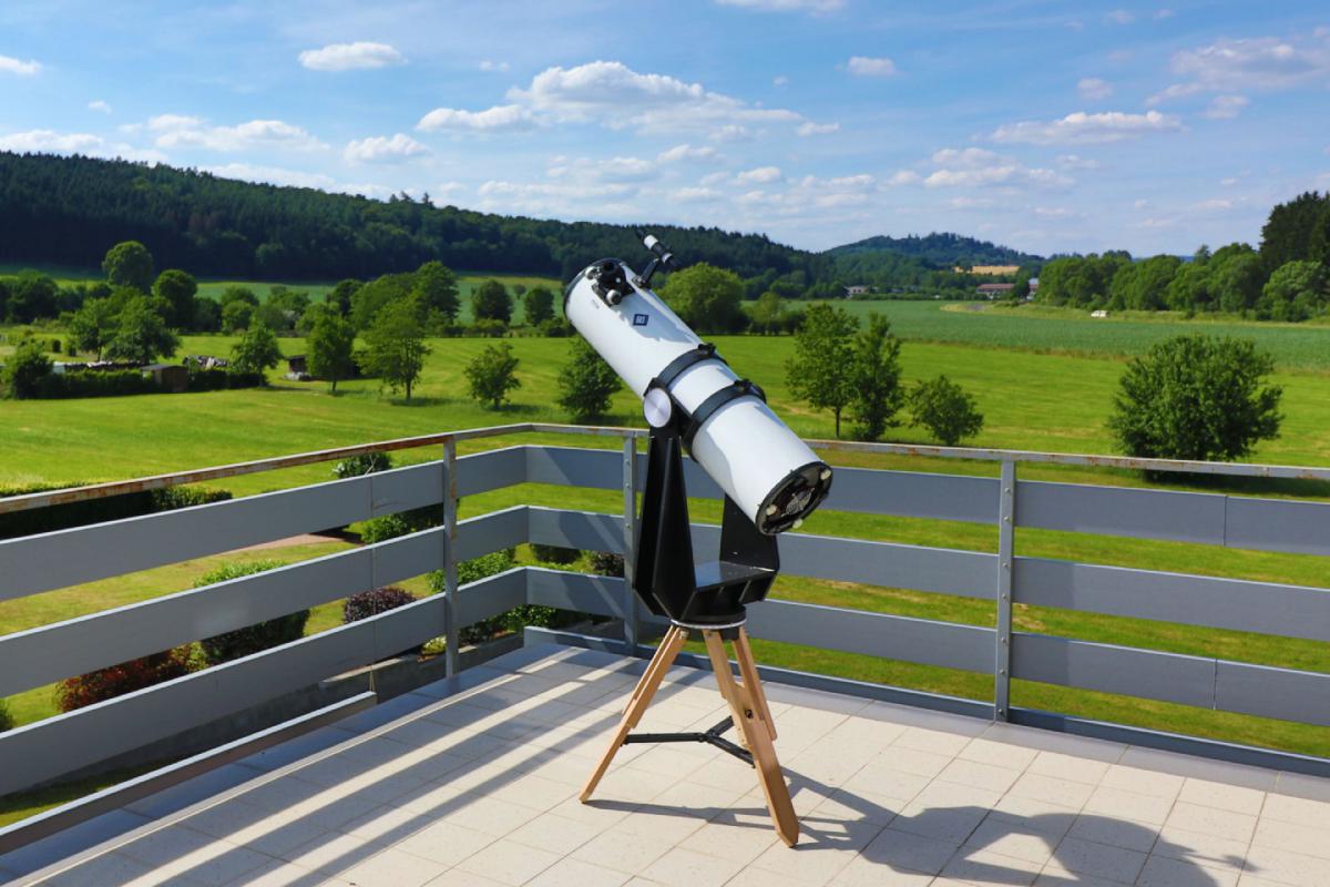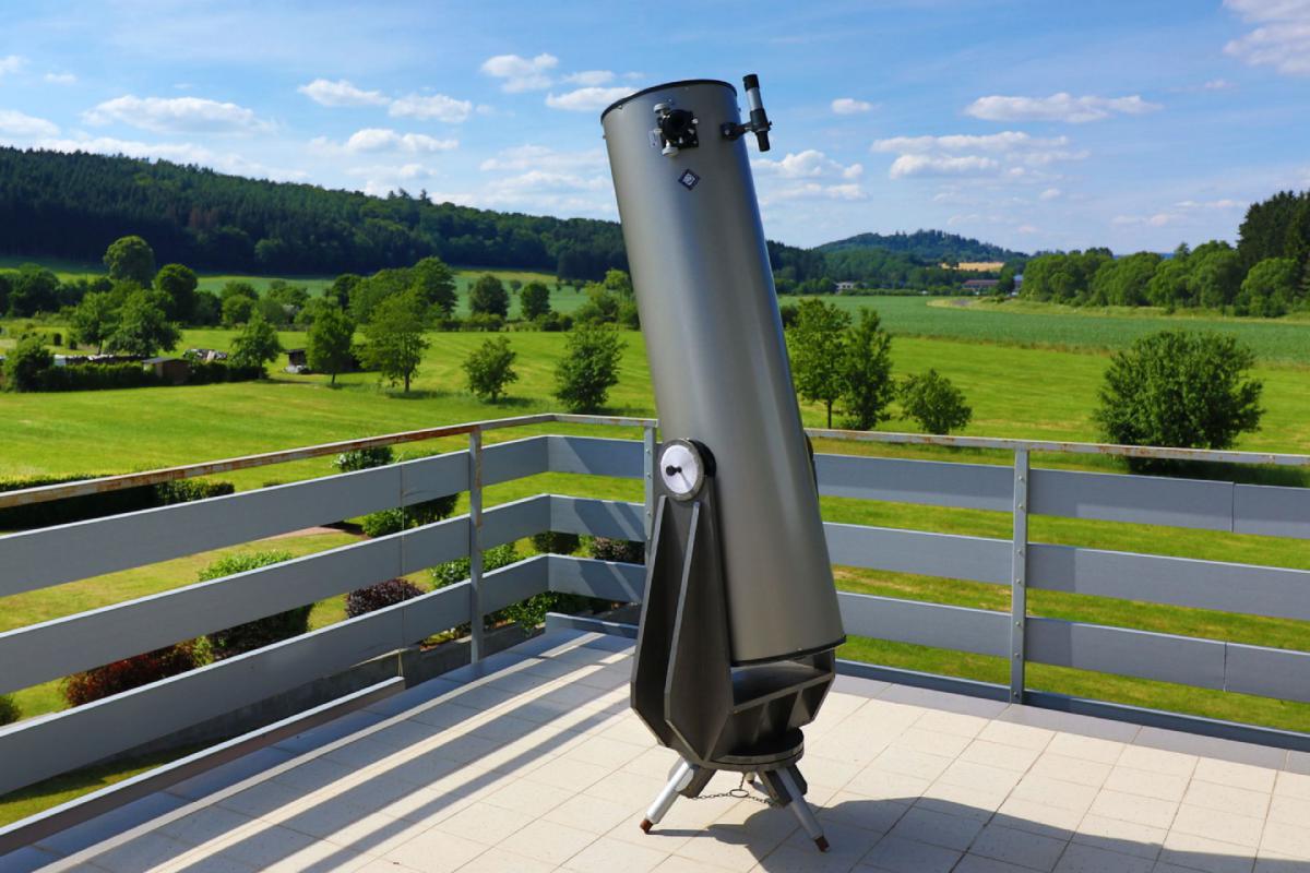 Unser 300-mm-Newton-Teleskop, ein Dobson von GSO, den wir scherzhaft den „Leviathan“ nennen, ist die Wiederanschaffung eines Gerätes, das ich vorher einmal verkauft hatte. Für den alten Vorgänger konstruierte ich im Jahr 2005 eine azimutale Montierung, der ich inzwischen den Namen „Rockerfork“ gegeben habe.
